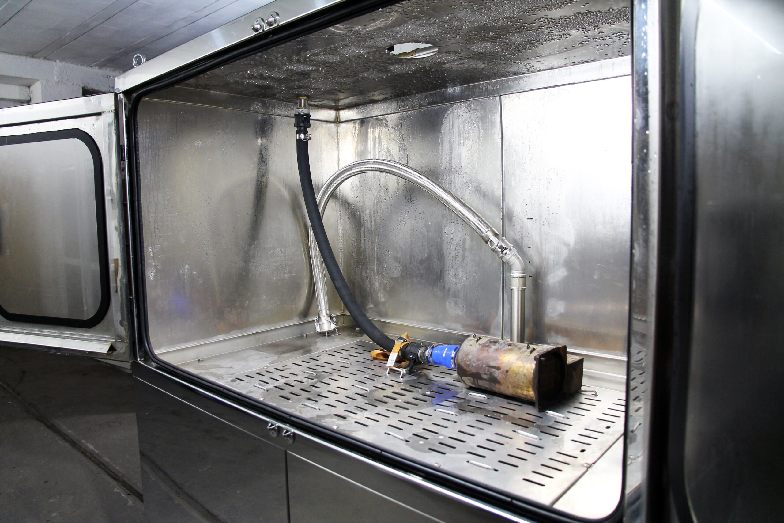 Die Reinigungsmaschine für die hydrodynamische Reinigung von DPF-Filtern POSEIDON-1000 stellt deren Effizienz auf 97% wieder her.