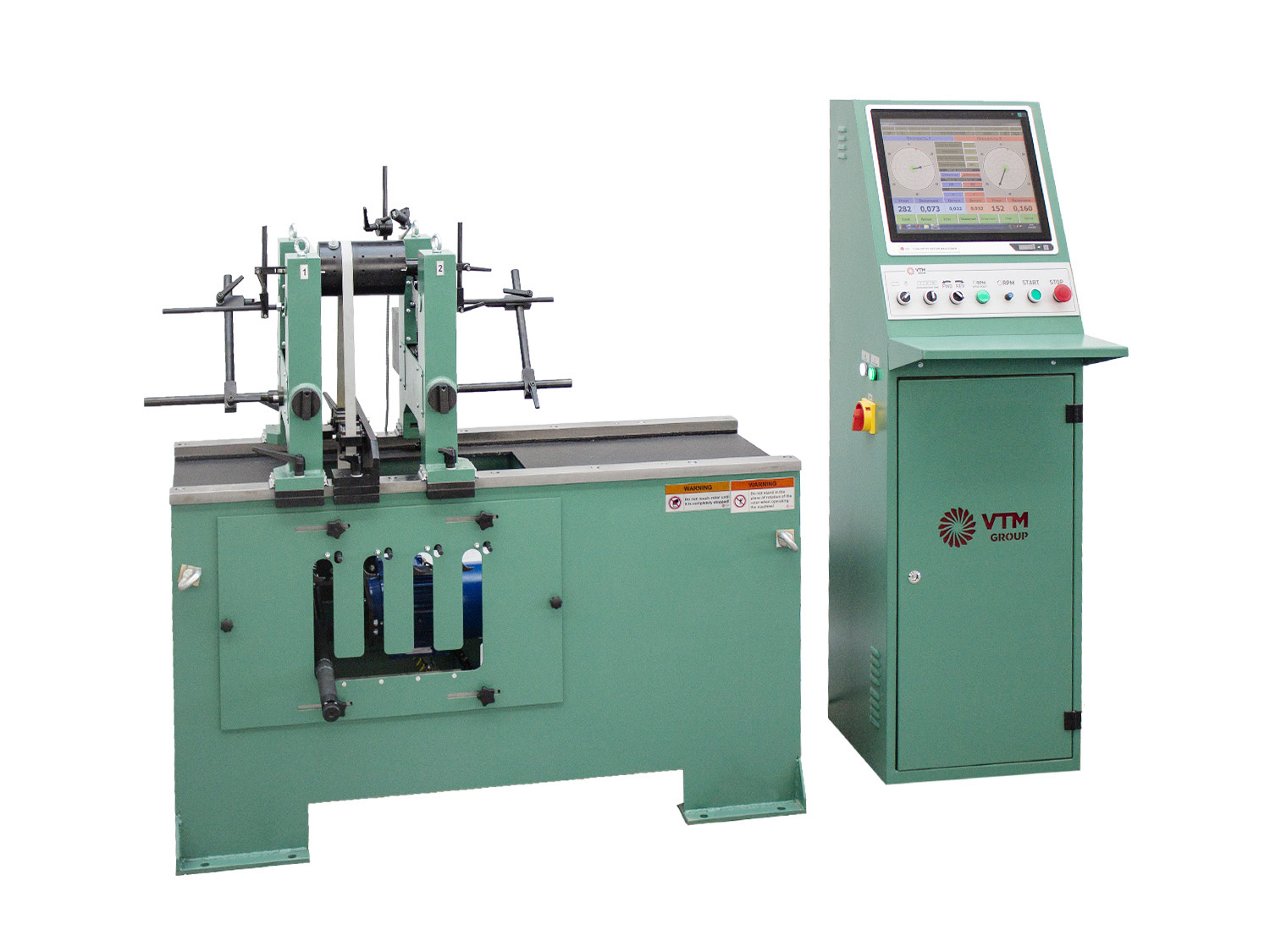Special features of this machine include very narrow supports (42 mm support width), which allows balancing of complex configuration parts such as crankshafts of cars, ship and railway turbochargers, turbochargers of cogeneration plants, etc. At the same time, these machines can be used for other simpler parts in terms of configuration such as electric motor rotors, all sorts of fans. This machine is also often used for balancing wood-cutting tools during their production.