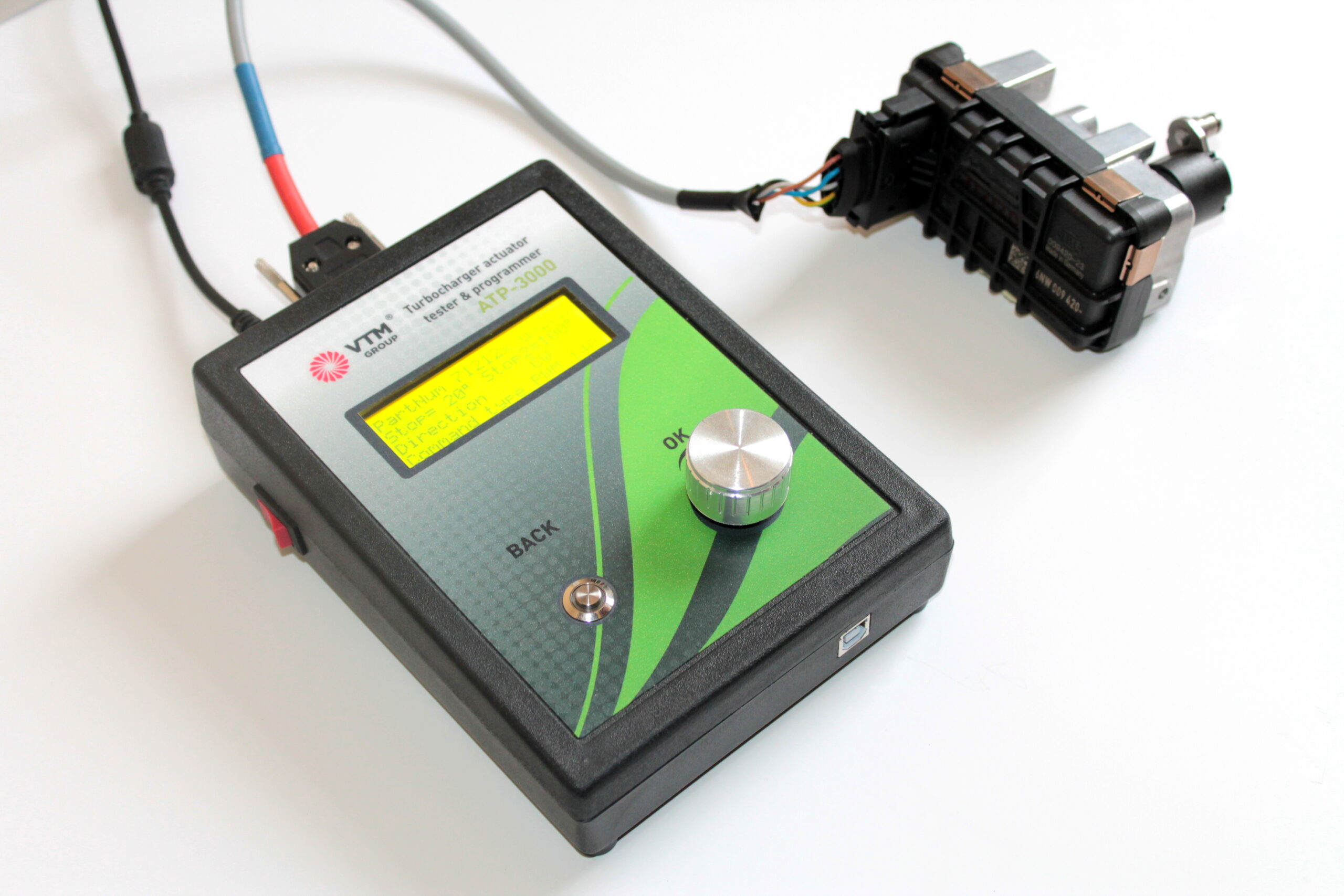 The ATP-3000 tester-programmer is an instrument for diagnostics of electronic actuators controlling regulated turbines with electric drive. It checks operability of the electric actuator as a whole and its separate elements, such as electric actuator and servomotor. The individual diagnostics of each element allows to determine precisely the condition of the turbocharger drive and detect problems, if they exist.